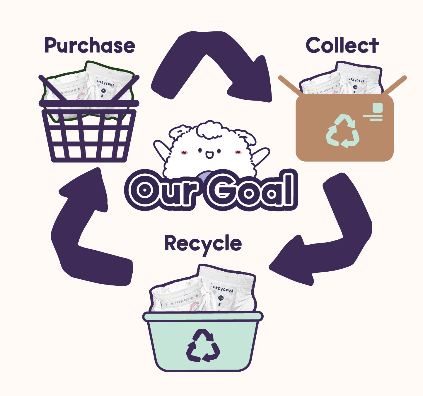 We aim to build the first diaper recycling facility capable of processing over one tonne of used diapers each day. While we’re still in the early stages and are far from having the full capabilities to recycle diapers, we’re working hard to get there. Check our progress through our social media and our blog, and take a look at our roadmap below on how we intend to build towards this mission.